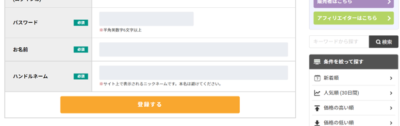 当ブログで紹介してます他のサイトも、ほぼ同様の登録となります。